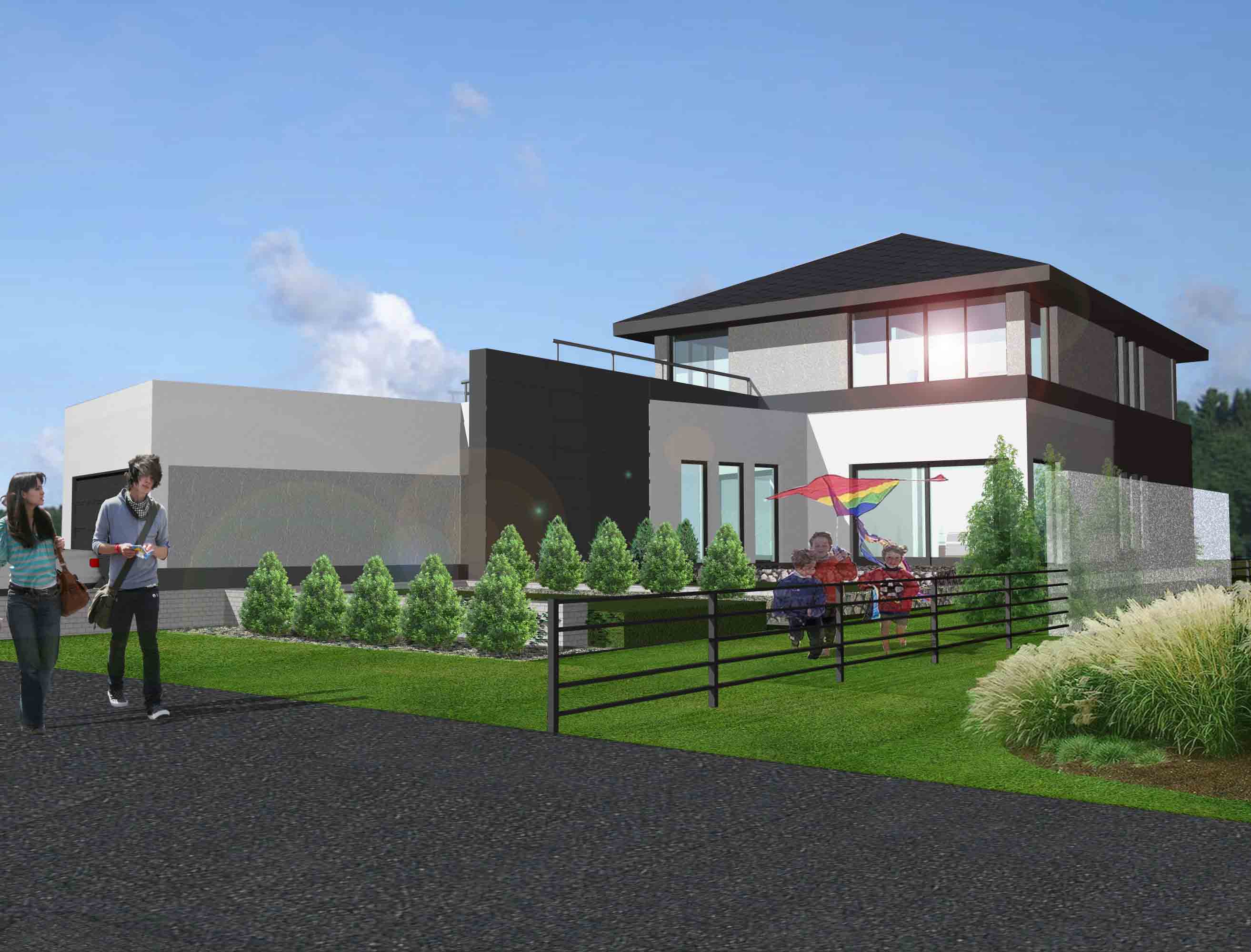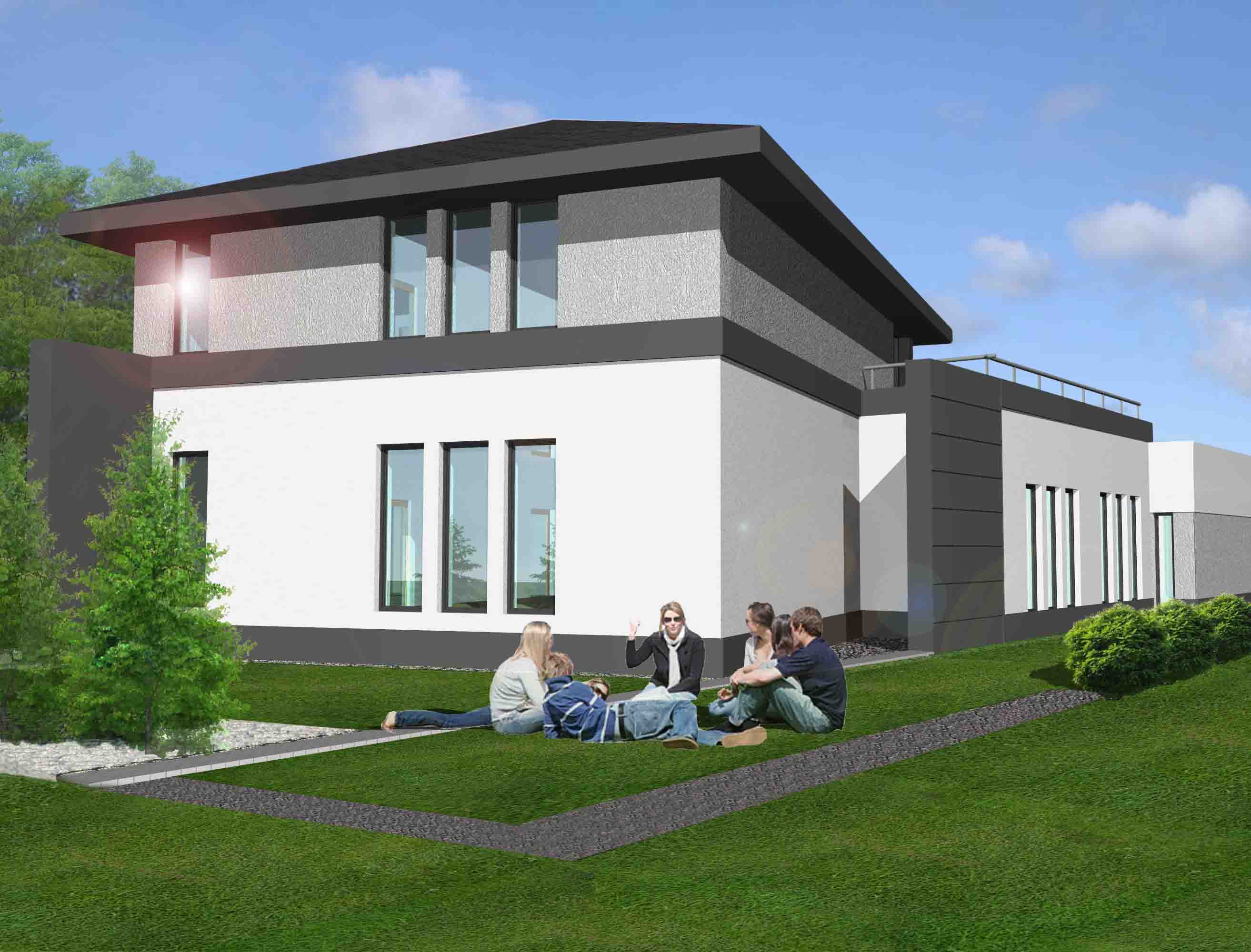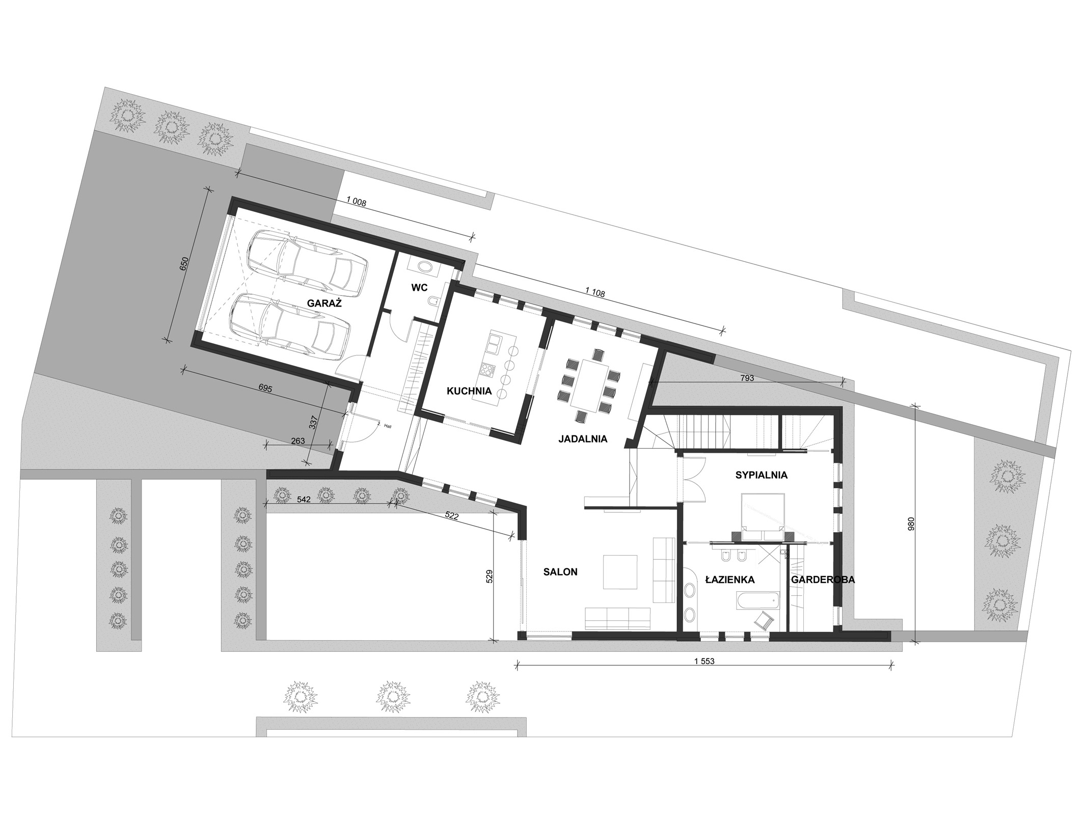 Projekt domu jednorodzinnego wraz zagospodarowaniem terenu w Chybach >>> Projekt koncepcyjny