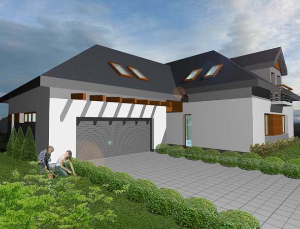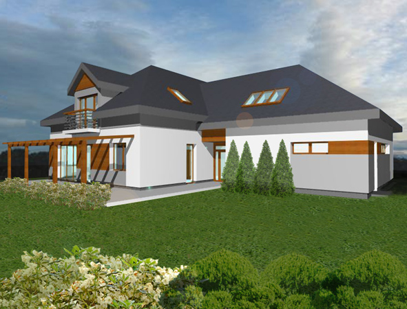 Przedmiotem inwestycji jest budowa domu jednorodzinnego o łącznej powierzchni użytkowej piwnicy, parteru oraz poddasza 405,87m 2 . >>> Projekt kocnepcyjny