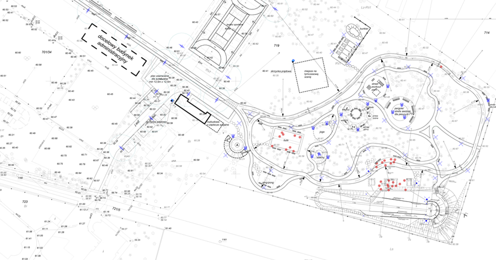 Koncepcja zagospodarowania terenu i układ funkcji terenów zielonych przeznaczonych pod funkcje kubaturowe dla usług sportu i rekreacji MOSIR-u, w Puszczykowie. >>> Zrealizowany 1 etap, II w trakcie realizacji